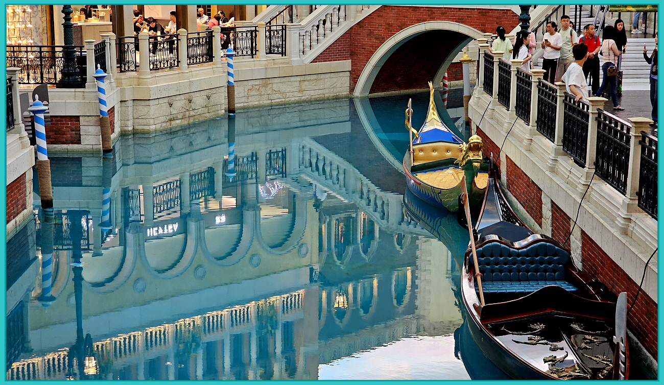 마카오 베네시안 리조트에서 운영하는 곤돌라는 바닥이 평평한 베니스 전통의 노 젓는 배로 건물 내 수로를 돌아다니는 관광 상품이다.