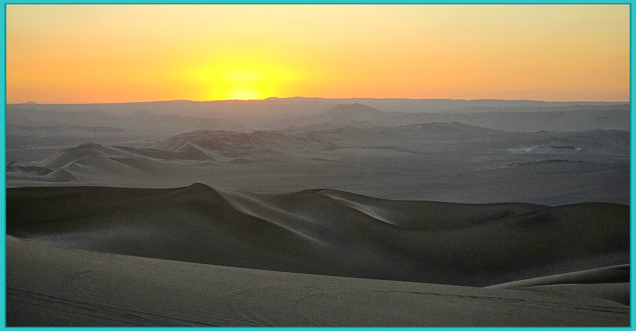 페루 이카 사막은 사막 한가운데 오아시스 마을 와카치나와 사륜 구동 버기카, 샌드 보딩으로 유명한 지역이지만 사막에서 노을을 보는 즐거움은 여행하는 맛의 진수를 극대화 하는 순간이 된다.